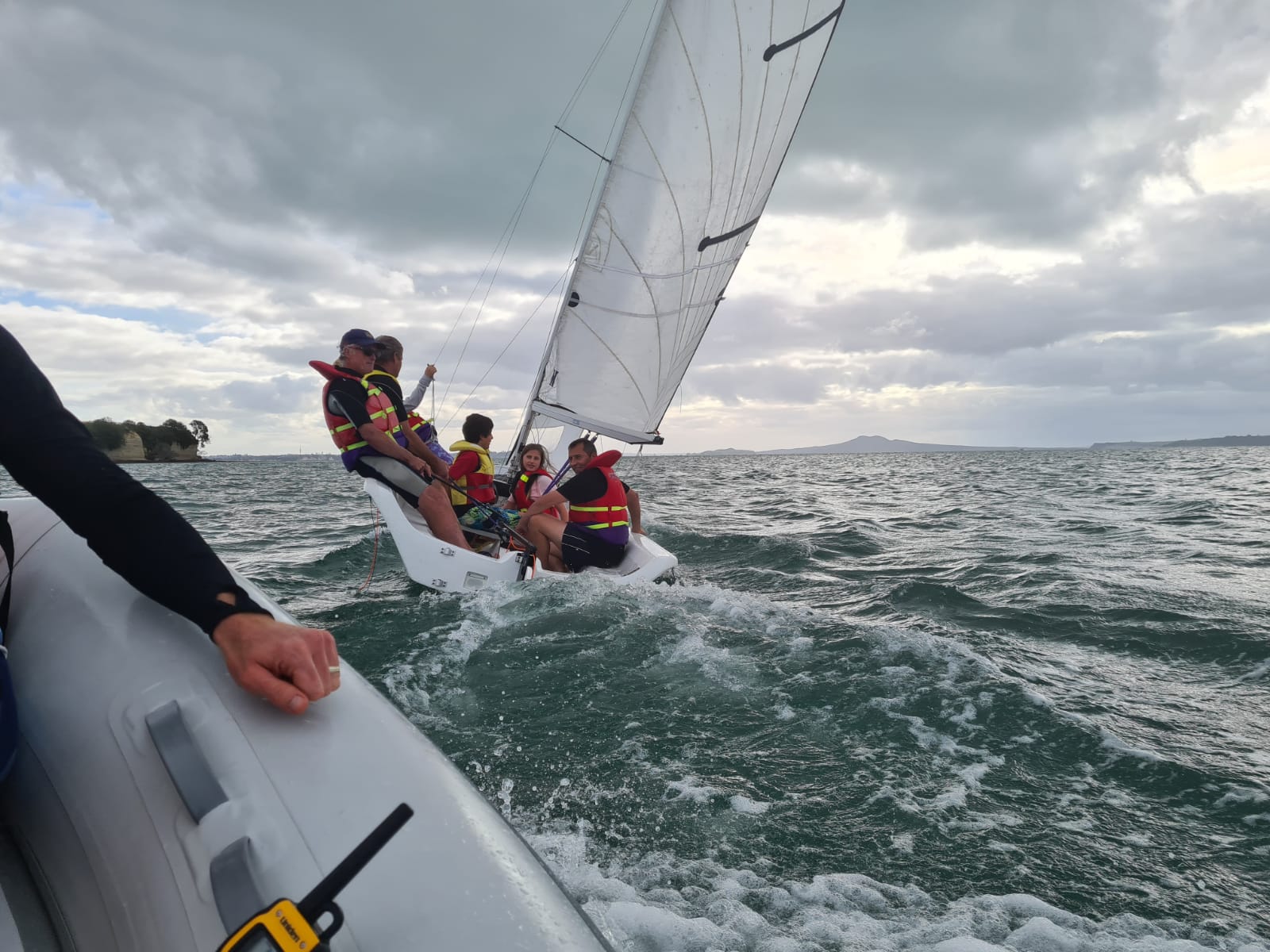Race 3 was made up of parents, and they too showed that they could get bunched at the mark and be blown backwards if you try to sail straight into the wind, much to the hilarity of the spectators.